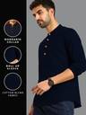 DaReal Men Solid Cotton Blend Straight Kurta (Dark Blue)