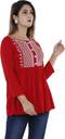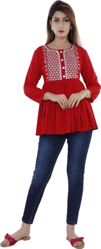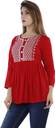 Casual Regular Sleeves Embroidered Women Red Top