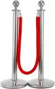 DARIT Queue Manager VIP Stanchion with 1.5m Red Velvet Rope Stainless Steel Set of 2 Posts - Ball Round Top Crowd Control Queue Pole Barrier, Red Carpet Party, Line Dividers Decoration (SILVER) Emergency Sign (Reflective Sign)