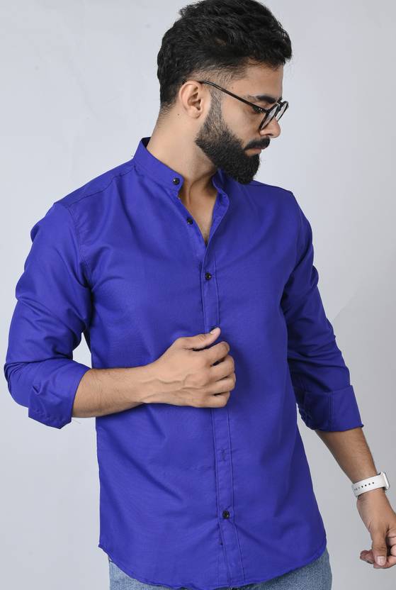 Introducing our Men's Solid Cotton Blend Collar Neck Full Sleeves Button Closure Casual Shirt, a versatile addition to any wardrobe.
