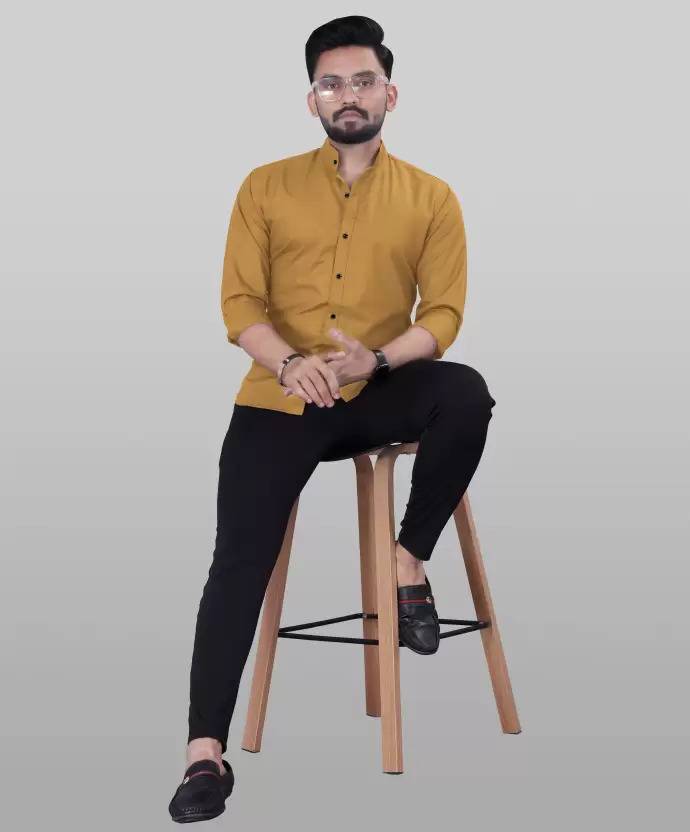 Tanip Men Regular Fit Solid Mandarin Collar Casual Shirt