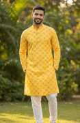 Men Cotton Blend Kurta Pyjama Set