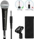 ? XLR-to-1/4 cable supplied, you just need to connect audio cable with microphone and plug to various devices, such as DVD, television, KTV audio, reverberator, mixer, tour bus, etc. can be mounted on any standard