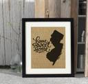 Home Sweet Burlap Print Wall Decor New Jersey State Map-Burlap Print with Frame