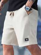 Upgrade your everyday style with these casual black textured shorts, designed for both comfort and fashion. Made with a soft, breathable fabric featuring a subtle grid-like texture, these shorts are perfect for daily wear, workouts, or relaxed outings. They come with adjustable drawstrings with wooden-style tips, deep side pockets for convenience, and a stylish stitched logo patch on the hem for a modern look. The lightweight design ensures maximum comfort, while the versatile black color pairs effortlessly with any outfit.