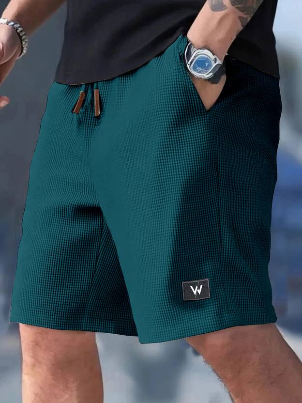 Upgrade your everyday style with these casual black textured shorts, designed for both comfort and fashion. Made with a soft, breathable fabric featuring a subtle grid-like texture, these shorts are perfect for daily wear, workouts, or relaxed outings. They come with adjustable drawstrings with wooden-style tips, deep side pockets for convenience, and a stylish stitched logo patch on the hem for a modern look. The lightweight design ensures maximum comfort, while the versatile black color pairs effortlessly with any outfit.