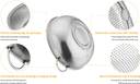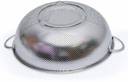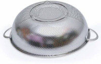 Incorporating perforated mesh, this colander facilitates swift and efficient drainage of water and liquids while preventing food from escaping. Constructed from durable and aesthetically pleasing stainless steel, it features a robust base and convenient side handles. The micro-perforated holes ensure smooth rinsing and easy cleaning, while the sturdy base enhances stability on any countertop, safeguarding the bowl and its contents.