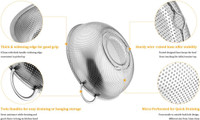 Owing to its versatile design, this colander proves to be an indispensable tool in the kitchen. Ideal for washing, rinsing, and draining various food items, it is well-suited for handling pasta, vegetables, fruits, spaghetti, meats, and seafood. Additionally, it effortlessly doubles as a fruit container and salad mixing bowl, adding convenience to culinary endeavours.