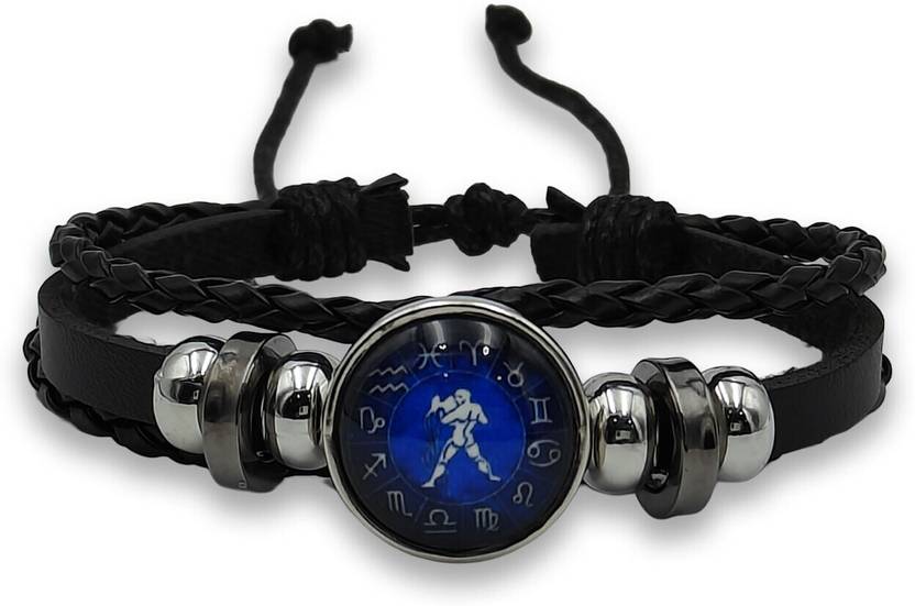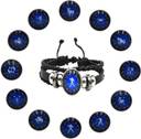 Zodiac Constellation Bracelet | Zodiac Signs Guardian Fluorescent Woven Black Leather Bracelet for Women and Men