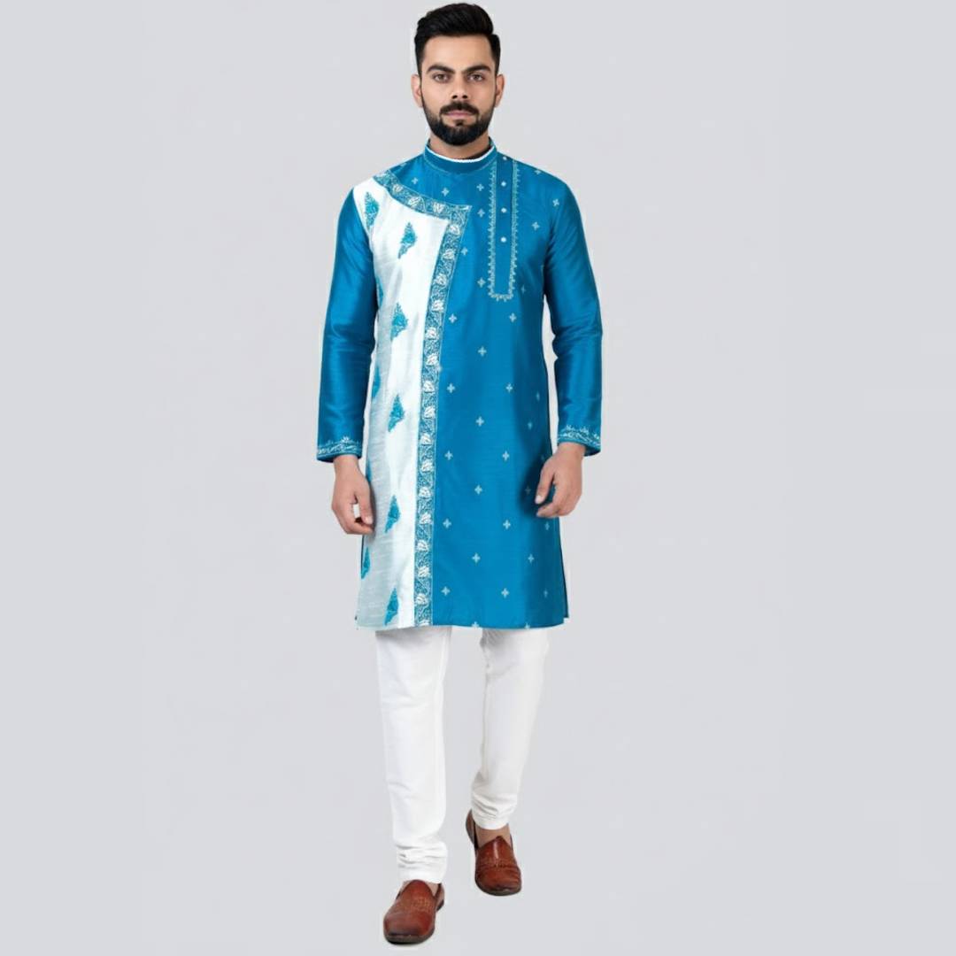 Kurta for men is made from cotton rayon fabric and Lucknowi work on it with Sequins perfect for wedding and party or festive wearing kurta for men