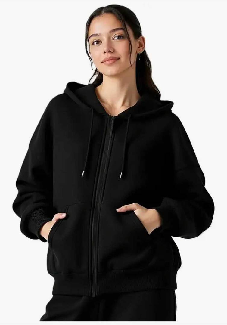 Women's Premium Fleece Zipper Hoodie Jacket Elevate your winter wear collection with the ultimate blend of comfort and style: the Full-Zip Hooded Jacket. Designed specifically for women, this must-have piece is crafted from high-quality cotton fleece fabric, ensuring exceptional warmth and a luxuriously soft feel against your skin. Whether you're lounging at home, running errands, or heading out for a casual meet-up, this jacket provides the perfect layer of insulation. It features full sleeves and an adjustable hood to offer maximum coverage and protection against the cold. The heavy-duty front zipper ensures easy wear and longevity, while the practical kangaroo pockets keep your hands warm and essentials secure. Forget compromising on style! The simple, timeless design makes it incredibly versatile, easily pairing with jeans, shorts, or track pants. Available in 15+ vibrant and classic colors, you can stock up and find the perfect shade to match every outfit and mood. Make this essential, durable, and cozy fleece hoodie your go-to jacket this season!