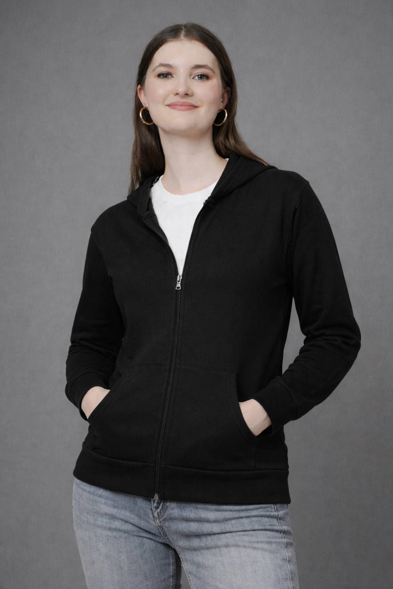 Women's Premium Fleece Zipper Hoodie Jacket Elevate your winter wear collection with the ultimate blend of comfort and style: the Full-Zip Hooded Jacket. Designed specifically for women, this must-have piece is crafted from high-quality cotton fleece fabric, ensuring exceptional warmth and a luxuriously soft feel against your skin. Whether you're lounging at home, running errands, or heading out for a casual meet-up, this jacket provides the perfect layer of insulation. It features full sleeves and an adjustable hood to offer maximum coverage and protection against the cold. The heavy-duty front zipper ensures easy wear and longevity, while the practical kangaroo pockets keep your hands warm and essentials secure. Forget compromising on style! The simple, timeless design makes it incredibly versatile, easily pairing with jeans, shorts, or track pants. Available in 15+ vibrant and classic colors, you can stock up and find the perfect shade to match every outfit and mood. Make this essential, durable, and cozy fleece hoodie your go-to jacket this season!