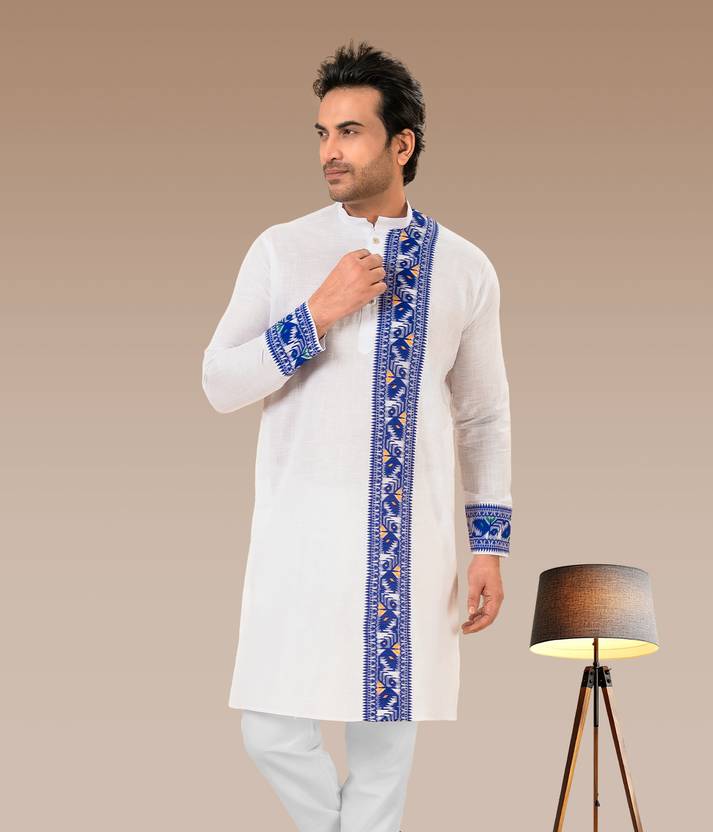 Your ethnic wardrobe with this stylish Men’s Jamdani Kurta, crafted from a premium cotton blend fabric that ensures breathability and all-day comfort. Featuring elegant Jamdani-inspired woven patterns, this kurta delivers a rich traditional appeal with a modern trendy touch. The regular fit provides a comfortable silhouette, making it perfect for daily wear as well as festive occasions. Designed with a classic neckline and fine detailing, this kurta pairs effortlessly with churidar, pajama, jeans, or trousers for a versatile ethnic look. Ideal for festivals, casual outings, family functions, and celebrations.