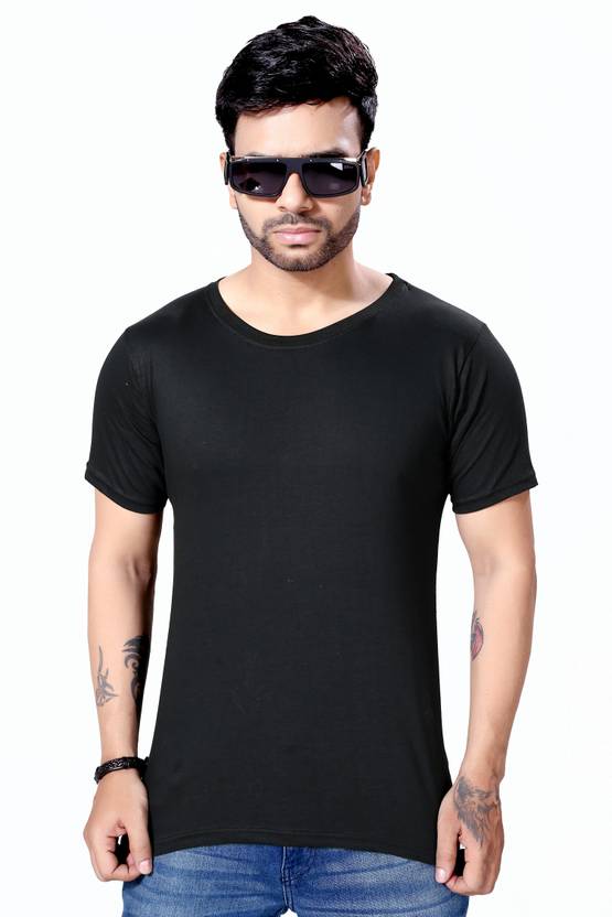 Men Solid Round Neck Cotton Blend Black T-Shirt