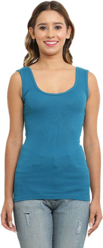 dazico Casual Sleeveless Solid Women Blue Top