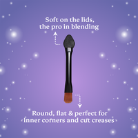 The palette includes a dual-ended brush that enhances your application process with two distinct functions. One end features a soft, sponge applicator that’s ideal for blending shadows seamlessly across your eyelids. The other end has a bristle brush designed for detailed work, such as applying eyeshadow to inner corners or creating precise cut creases.