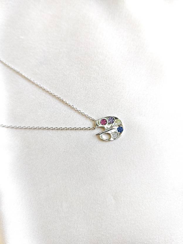 Explore the captivating world of color with our Silver Color Palette Necklace. This artistic piece features a palette pendant with an array of vibrant hues, meticulously crafted in shimmering silver tones. Each color on the palette represents a unique facet of your personality and style. Suspended on a delicate chain, this necklace allows you to showcase your love for artistic expression and creativity. Whether worn as a symbol of your colorful spirit or as a fashion-forward accessory, the Silver Color Palette Necklace adds a touch of vibrancy and individuality to your look. Let its presence inspire you to paint your world with an endless spectrum of possibilities and express your truest self through the language of color.