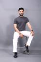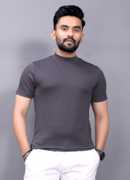 DBAX Men Solid Turtle Neck Polyester Grey T-Shirt