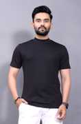 DBAX Men's Premium Polyester Ribbed T-Shirt Elevate your everyday look with the DBAX Men's Premium Polyester Ribbed T-Shirt, a perfect fusion of comfort, style, and minimalism. Crafted from high-grade polyester, this tee offers a smooth, wrinkle-resistant finish and a structured silhouette that holds its shape wear after wear. The subtle ribbed texture adds a sophisticated touch, while the mock neck design brings a refined edge to your casual wardrobe. Fabric: Durable, breathable 100% polyester Design: Ribbed texture with a sleek mock neck Color: Classic black for versatile styling Fit: Slim yet comfortable for a sharp profile Care: Easy to maintain – machine washable and quick drying