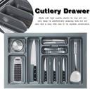 ABS Cutlery Tray 800mm High Gloss Gray perfectly organizes your cutlery items in a smart compartments for easy and quick access, high quality material and finish DBR cutlery trays are very high quality and have high gloss gray finish which makes unique visual statement behind the drawer front. Dimension : 736mm x 487mm x 60mm (WxDxH), Can be cut to fit the size, ( Check the space available before buying)
