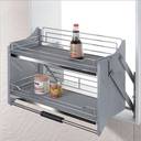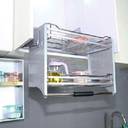 Modular Kitchen Storage Rack Lift Basket Elevator Pull Down Two Tier Shelf Unit For 900 mm Width Cabinet , Silver Modular Kitchen Storage Rack Lift Basket Elevator Pull Down Two Tier Shelf Unit For 900 mm Width Cabinet , Silver. Lift Basket ,which is elegant and smart and the capacity is large. It can be easily to be adjustable which is very convenient for the collection and release of articles. It is easily pull up and down. Use to store different kitchenware, snacks, condiments, etc. It is easily pull up and down. It can be easily to be adjustable. Integrative design benefits for the well -organized storage and base mount design make the pulling easy. 2 layers storage for kitchenware ,snacks, condiments, etc.