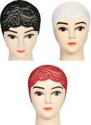 This under scarf is suitable for wearing with hijab or without it or even under a scarf from which it gets its name. When worn under a hijab or scarf, this jersey under scarf keeps the hair away from the face and prevents it from exposure. This under scarf is suitable for wearing with hijab or without it or even under a scarf from which it gets its name. When worn under a hijab or scarf, this Net / Lace under scarf keeps the hair away from the face and prevents it from exposure. . Best Full Head Cover Cap to be Worn Under Scarved to Protect Hair From Falling on Forehead. Can Also Be Worn Under Any Kind of Hijab. These under scarves are tube-like and open from both ends. It is made of stretchable Net fabric and is non-slippery.