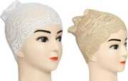 This under scarf is suitable for wearing with hijab or without it or even under a scarf from which it gets its name. When worn under a hijab or scarf, this jersey under scarf keeps the hair away from the face and prevents it from exposure. This under scarf is suitable for wearing with hijab or without it or even under a scarf from which it gets its name. When worn under a hijab or scarf, this Net / Lace under scarf keeps the hair away from the face and prevents it from exposure. . Best Full Head Cover Cap to be Worn Under Scarves to Protect Hair From Falling on Forehead. Can Also Be Worn Under Any Kind of Hijab.
