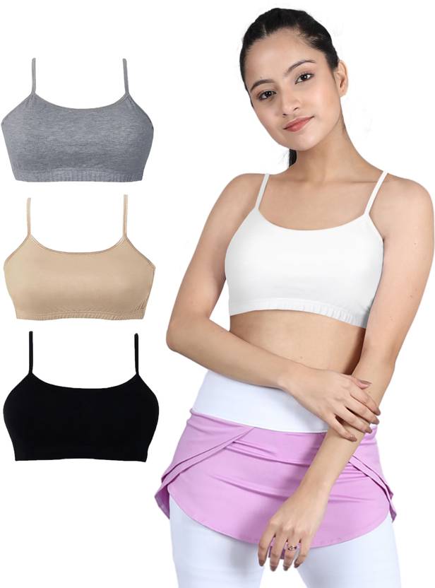 "SLIP ON WIRELESS BRA: Our gym bra has an easy slip on design and is made with soft, stretchy double-layered seamless fabric. You can wear these everyday sports bra for girls/women as one of the most comfortable crop top bra, gym workout bra or everyday yoga bras. Our solid and printed regular uniform bra or girls and women can be worn under any clothing without additional slips. The Non-wired tshirt bra for women and girls is specially designed to provide full coverage and great support. These beginners bra for girls or thin strap bra for women are designed with breathable cotton fabric to keep you cool, fresh and dry throughout the day. "