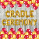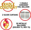 14 Alphbets Foil "CRADLE CEREMONY", 2 Silver Curtains, 15 Golden Metallic Balloons, 15 Red Metallic Balloons