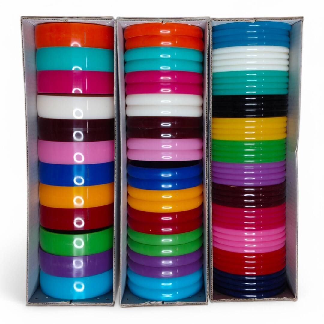 Design beautiful silk thread bangles with this set of 84 regular plastic bangles. This collection includes the popular 1 cut, 2 cut, and 4 cut designs, offering versatility for various styles. The included 30g fabric glue cone ensures a strong and lasting hold for your embellishments.
