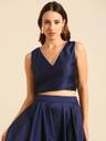 De Moza Women Blouse Woven Top Solid Polyester Navy
