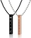 De-Ultimate Black And Rose 3D King Queen Crown Vertical Stick Cuboid Name Bar Pendant Locket Stainless Steel Pendant Set