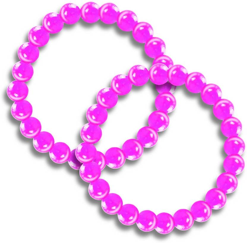 (Pack Of 2 Pcs) Adjustable Size Pink Plain 8mm Moti Pearl Bead Natural Feng-Shui Healing Crystal Gem Stone Wrist Band Elastic Bracelet For Men's & Women's