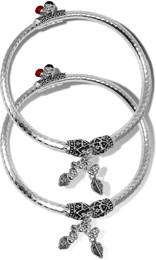 1 Pair Rajasthani Style Silver Alloy Ghungroo Painjan Payal Leg Foot Bangle Kada