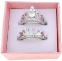 Me & You His Her Adjustable Size Crystal Stainless Steel Platinum Plated "Dream Love Promise" Fancy Couple Finger Diamond Rings For Men's & Women's/Husband & Wife/Boyfriend & Girlfriend/King Crown & Queen Crown/Prince Princess With Red Box