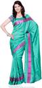 This is a party wear saree made from Bhagalpuri Cotton Fabric, The saree is blended with a broad border with contrast matching threads turn it stylist and unique in it's class. It's an ideal to wear to grab an attention in party or social function.