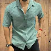 Popcorn Imported Fabric Short Sleevees Plain Formal Shirts Mens High Quality Cotton Classy Popcorn Shirts For Men Pure Imp Texture Fabrics Trending Stylist Fashionable Popcorn Shirt For Men Readymade Online Shirt For Men Fashion Fully Stitched Shirt Goa Style COMFY COTTON shirts for Men by