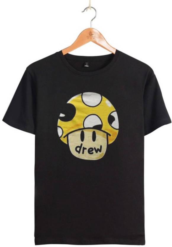 Men Printed Round Neck Cotton Blend Black T-Shirt