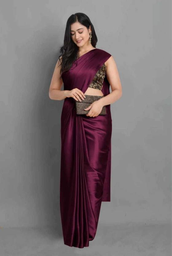 Decent Choice Solid/Plain Bollywood Satin Saree (Magenta)