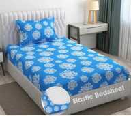 Decent Home Cotton Double Fitted (Elastic) 240 TC Floral Bedsheet (Pack of 1, Blue)