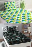 Decent Home Cotton Single Flat 240 TC Printed Bedsheet (Pack of 2, Gray, Black)