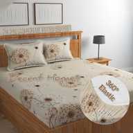 Decent Home Cotton King Fitted (Elastic) 240 TC Floral Bedsheet (Pack of 1, Beige Glace cotton)