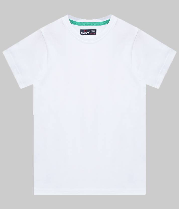 Dechado Boys Solid Pure Cotton Regular T Shirt (White, Pack of 1)
