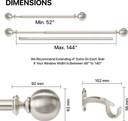 52”- 144” ( 52 inch is the minimum size of the curtain rod and it can be Expandable to 144-inch maximum )