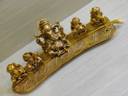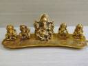Deco4U Set of 5 Musical Ganesh Ji Sitting On A Leaf Hindu God Ganesha Idol Decorative Showpiece - 12 cm (Bronze, Gold)
