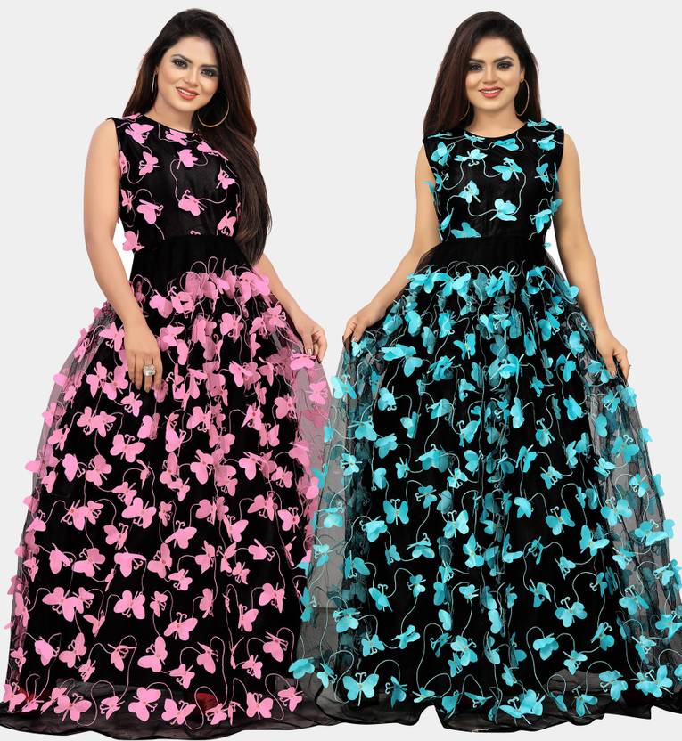 We offer high quality Range of Gowns that is designs by our team of creative professionals and at the same time perfect mix of modern patterns and contemporary designs Because of Fashion and style always depends on good color and fantastic combination of shades so We are glad to Introduce our Beautiful and Elegance Floor Length semi-stitched Ball Gown which is Emblished with Fancy Abstract over net Fabric. This Semi-Stitched Gown can be Fit as per your Requirement Having Beautiful Color and Attractive Designed Fabric for the Gown. Gown is Crafted with Butterfly over Net Fabric that suits you Best. All of them Together will make your look more Attractive and eye catching. Grab this class of crafting and wear it as per your choice at any occasion. This Ball Flared Gown can be a perfect gift for your loved ones. Creative Combo Offer for Best Chosen Color. it suits you best for any Occasions like Part Wear,Ceremony Wear,Wedding Wear,Offce Wear