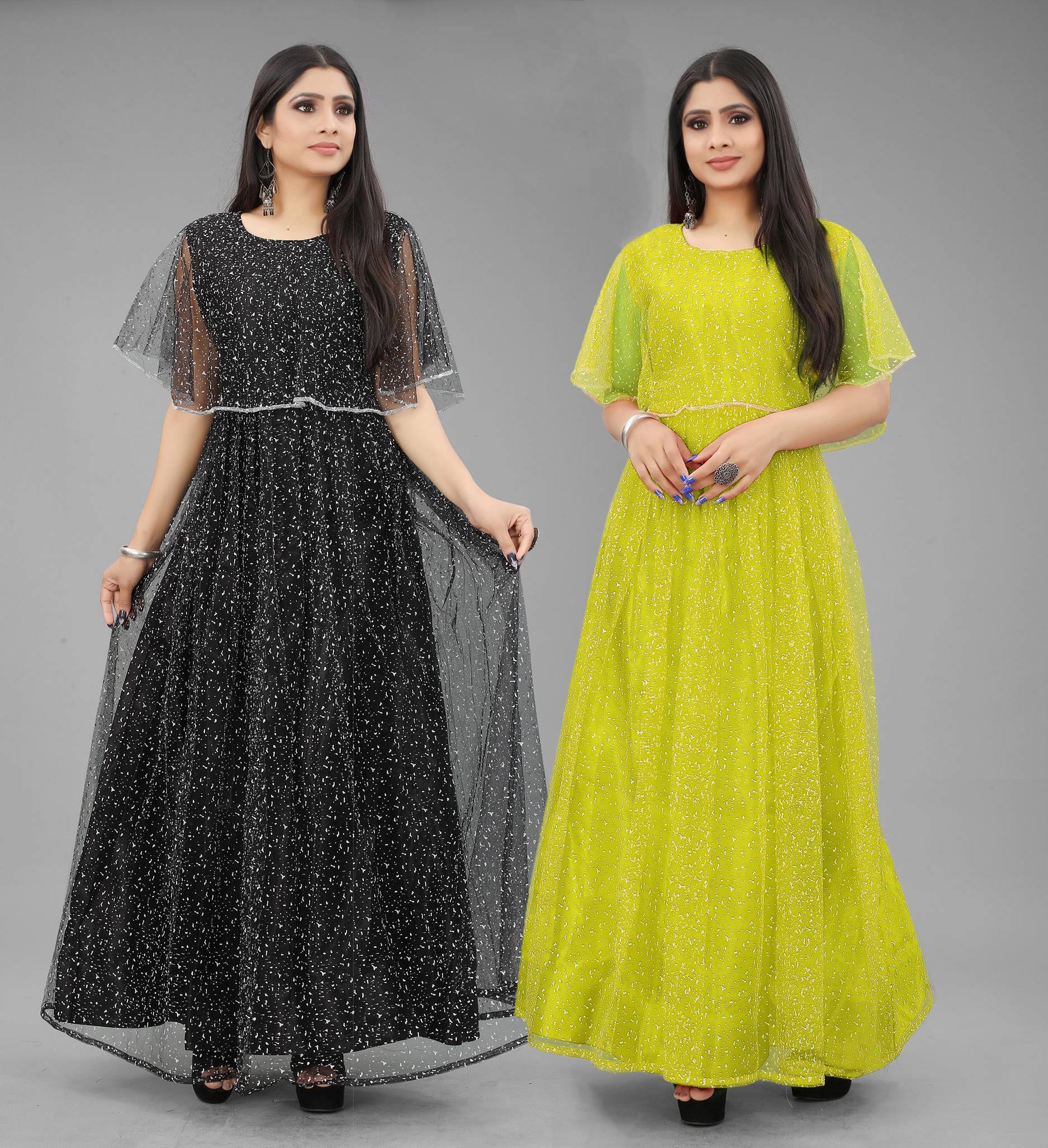 We offer high quality Range of Gowns that is designs by our team of creative professionals and at the same time perfect mix of modern patterns and contemporary designs Because of Fashion and Style always depends on good color and fantastic combination of shades so We are glad to Introduce our Beautiful and Elegance Floor Length semi-stitched Ball/Flared Gown which is Embellished with Fancy Rubber Dot over net Fabric. This Semi-Stitched Gown can be Fit as per your Requirement Having Beautiful Color and Attractive Designed Fabric for the Gown. Gown is Crafted with Rubber Print over Net Fabric that suits you Best. All of them Together will make your look more Attractive and eye-catching. Grab this class of crafting and wear it as per your choice at any occasion. This Ball/Flared Gown can be a perfect gift for your loved ones.