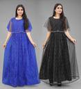 DECOFIN Self Design, Embellished Net Semi Stitched Flared/A-line Gown (Black, Blue)