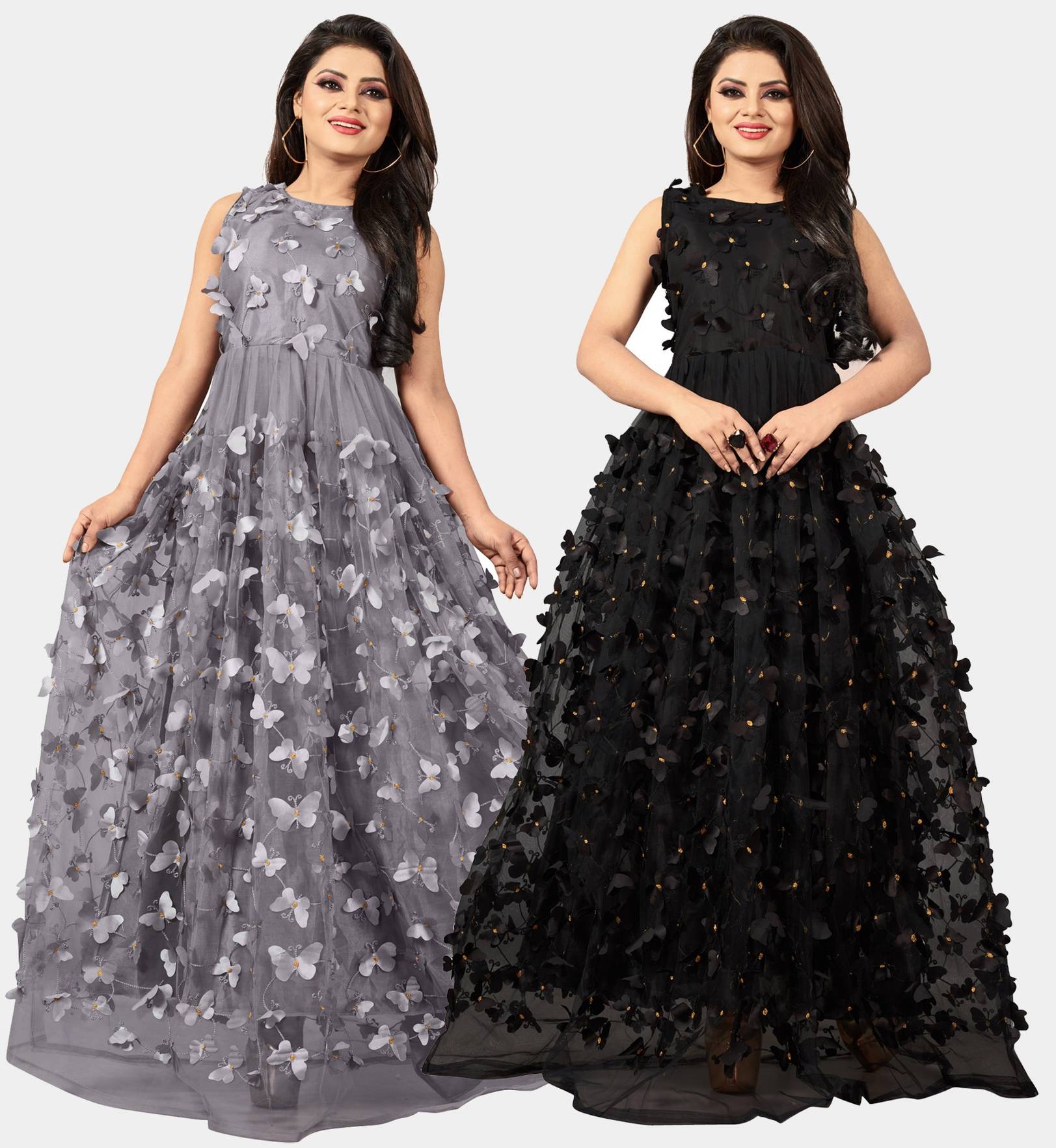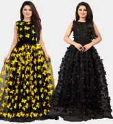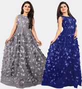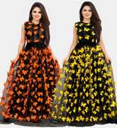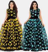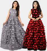 We offer high quality Range of Gowns that is designs by our team of creative professionals and at the same time perfect mix of modern patterns and contemporary designs Because of Fashion and style always depends on good color and fantastic combination of shades so We are glad to Introduce our Beautiful and Elegance Floor Length semi-stitched Ball Gown which is Emblished with Fancy Abstract over net Fabric. This Semi-Stitched Gown can be Fit as per your Requirement Having Beautiful Color and Attractive Designed Fabric for the Gown. Gown is Crafted with Butterfly over Net Fabric that suits you Best. All of them Together will make your look more Attractive and eye catching. Grab this class of crafting and wear it as per your choice at any occasion. This Ball Flared Gown can be a perfect gift for your loved ones. Creative Combo Offer for Best Chosen Color. it suits you best for any Occasions like Part Wear,Ceremony Wear,Wedding Wear,Offce Wear