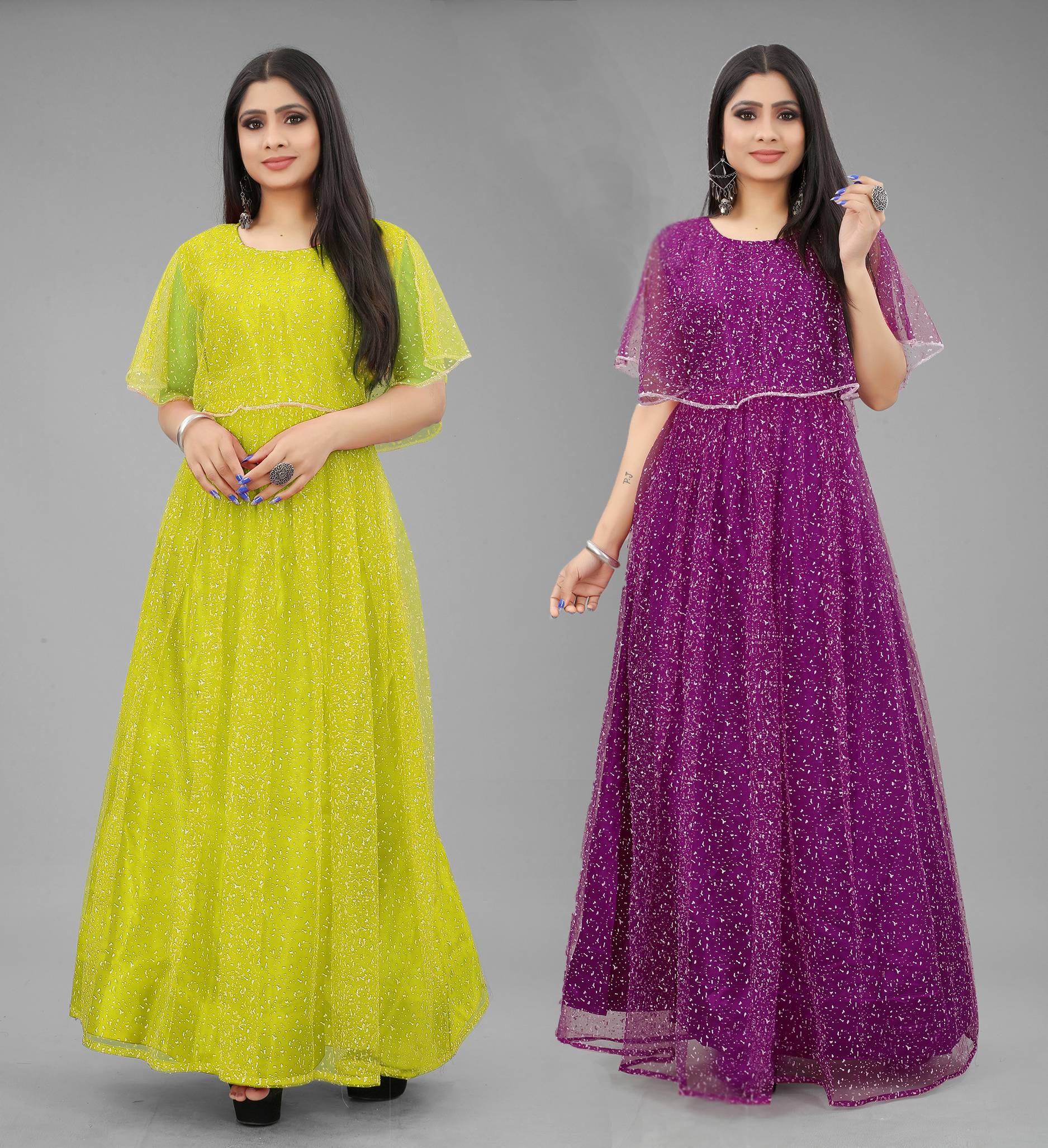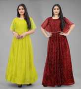 We offer high quality Range of Gowns that is designs by our team of creative professionals and at the same time perfect mix of modern patterns and contemporary designs Because of Fashion and Style always depends on good color and fantastic combination of shades so We are glad to Introduce our Beautiful and Elegance Floor Length semi-stitched Ball/Flared Gown which is Embellished with Fancy Rubber Dot over net Fabric. This Semi-Stitched Gown can be Fit as per your Requirement Having Beautiful Color and Attractive Designed Fabric for the Gown. Gown is Crafted with Rubber Print over Net Fabric that suits you Best. All of them Together will make your look more Attractive and eye-catching. Grab this class of crafting and wear it as per your choice at any occasion. This Ball/Flared Gown can be a perfect gift for your loved ones.
